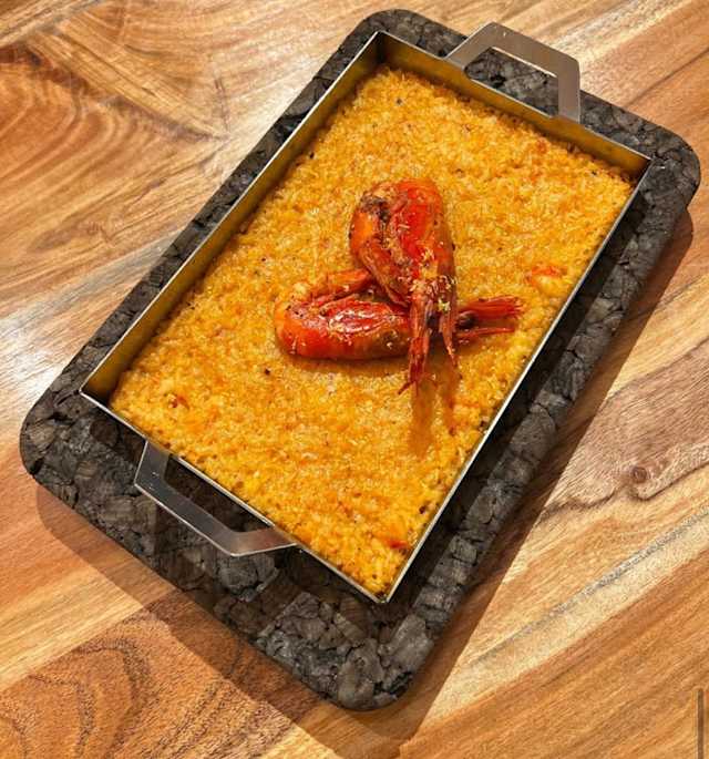 - Mar calmo, fogo contido. Lagosta suculenta encontra a ’nduja num risotto cremoso, onde a doçura e o calor se revelam em equilíbrio