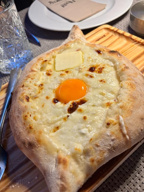 9.5/10The food was really delicious, especially the khachapuri! The restaurant also had great ambiance and even a ginger cat that was wandering around outside near the patio.