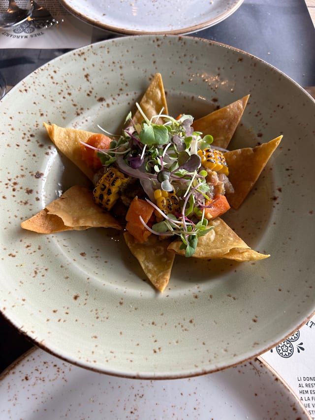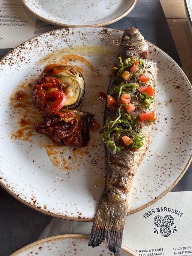 9/10Had a lovely lunch at Tres Margarit yesterday, and really enjoyed it. Located in a beautiful stone masia hotel overlooking the fields, the views were very enjoyable. Impeccable and friendly service with attention to detail, an overall pleasant experience we will definitely repeat. Highly recommend the Chicken caesar salad, which was superb (it's VERY hard to find a proper CCS in Spain!) , as well as the arroz and secreto, both excellent. We will definitely return! The only downside was that it was not clear that the restaurant was inside the hotel complex, so we, and several other diners, drove past the hotel into a village and had to turn around in a narrow street. Perhaps better signage or Google Maps location would help!