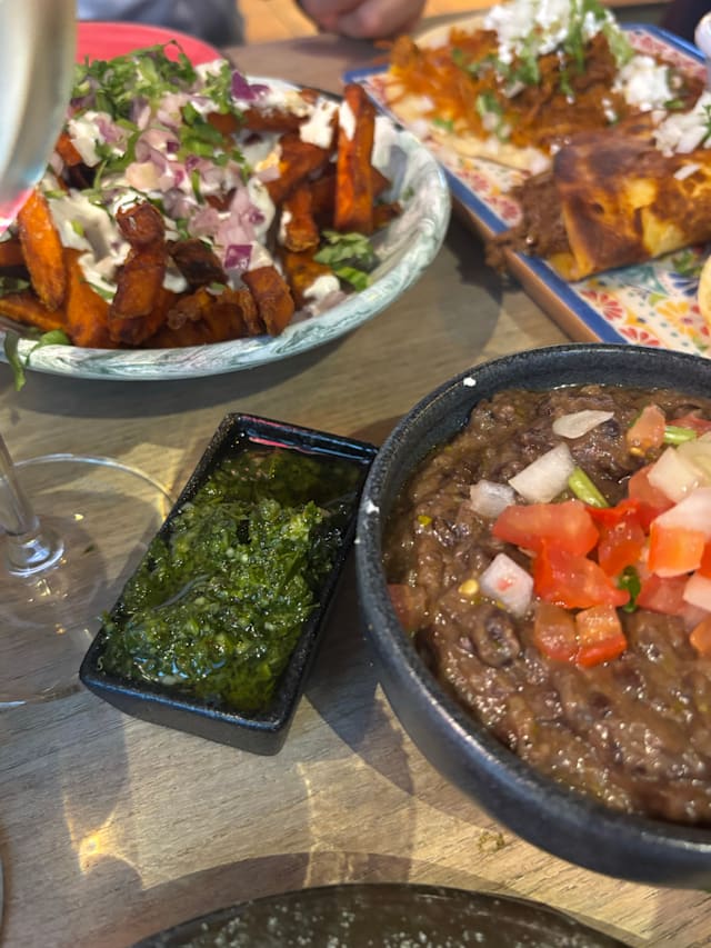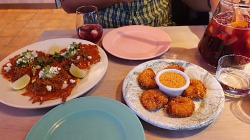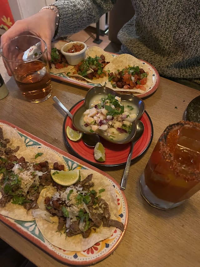 5/10The food is mediocre, possibly the worst Mexican food I’ve ever had. Not terrible, but definitely not authentic or flavorful. The guacamole was completely tasteless. The place is very dirty and messy—there was even a vacuum cleaner hose under the table. The tables are so small they feel more like tiny platters in a cramped, hallway-like space. For one person, it's barely manageable; for two, it's nearly impossible to eat without placing dishes, the cutlery box, and napkins beside you or on the window bench. The waitress barely understood English and seemed irritated throughout the service. To make matters worse, the tip was predefined, and she claimed it couldn’t be adjusted. A super disappointing experience.