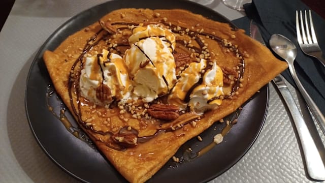 - Chocolat chaud, caramel beurre salé, noix de pécan et noisettes, glace au yaourt, chantilly