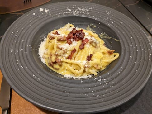 9.5/10Made a reservation and was seated right away. We arrived as the restaurant was opening, so it was very quiet at first, but got more lively as people came in. This was our first meal on our vacation and we were not disappointed. We ordered the oxtail ragout and the amatriciana and both pastas were amazing. Their tiramisu was the best we had during our entire trip. Our waiter spoke minimal English, but we were still able to get by and service was great.