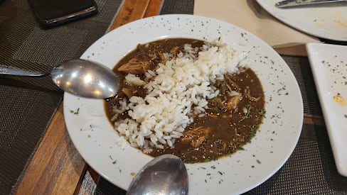 10/10A taste of New Orleans in Madrid! Jambalaya, crawfish croquetas and fried green tomatoes! The shrimp po-boy was overstuffed and full of Creole flavor thanks to the homemade remoulaude sauce, the gumbo was rich, dark and sultry, chock full of shrimp, sausage and chicken and New Orleanian spices. The hurricane cocktail was fruity and fresh and a little bit dangerous (so drinkable but so potent). And to top it off, bananas foster, flambeed tableside with a generous splash of banana liqueur. Can't wait to go back for the muffuletta, the soft shell crab poboy and the blackened fish. Be sure to ask about the onion with chocolate--mind-bendingly delicious! Definitely recommend!!!,