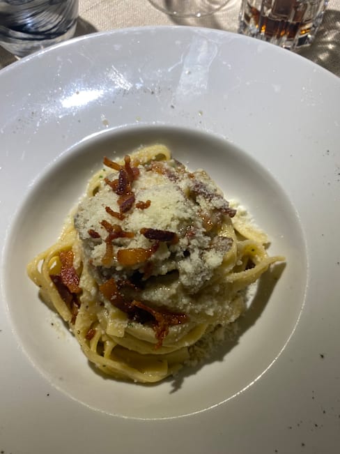 10/10We stumbled upon this restaurant the first time while at the top of The Spanish Steps . Enjoy it very much the food was delicious . To end our evening a random local person had the urge to play the piano and was welcomed by the management . He was an excellent piano player and was a wonderful way to end the night . Our second visit we had the most amazing dinner! The staff remembered us and we were treated like family . The ravioli carbonara was just this side of heaven!!! Thank you, Phyllis, Paul and Arlene