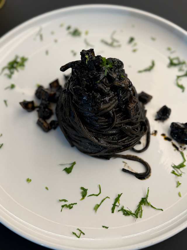 - Casarecce al pistacchio con guanciale croccante e stracciatella