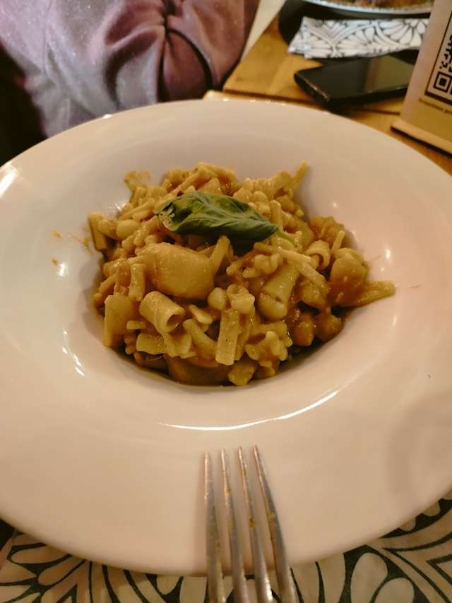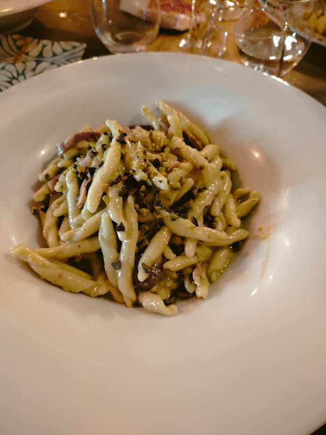 - Fusilli avellinesi, speck, pesto di pistacchio e pecorino