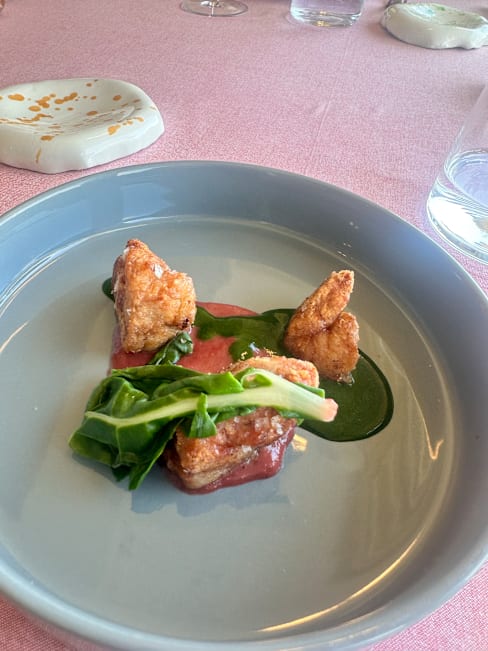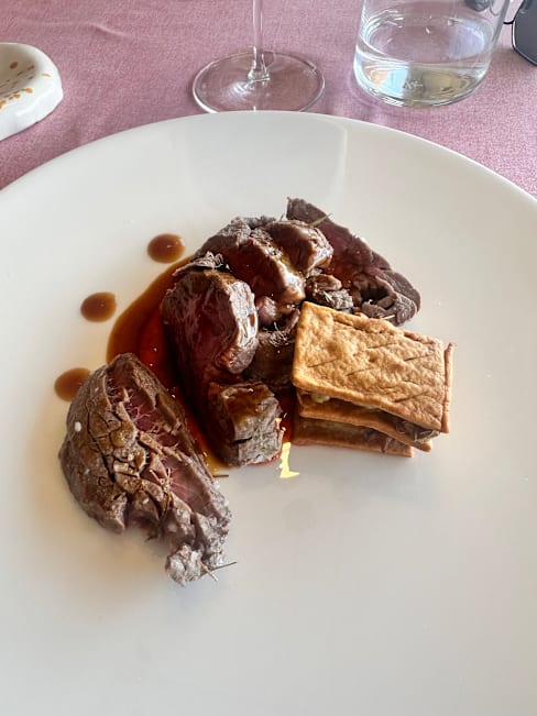 4/10This was a highly disappointing meal. All courses, with the exception of the pork main course, completely lacked flavor. The pork was somewhat flavorful, but the skin was not crisp and the flavor was dulled by the insipid sauce. The breads were stale and the touted olive ice cream icy. The view is lovely, though.