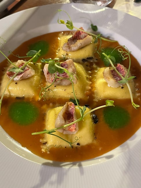 9.5/10One of my favorite meals ever! Began with fresh ravioli in a red shrimp sauce, followed by amazing cod. My wife really enjoyed her food as well.