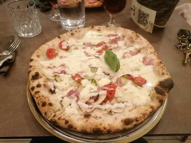 - Polpa di pomodoro CBT, mozzarella fatta&mangiata, prosciutto cotto, funghi, salame ventricina e spicchi di carciofi grigliati