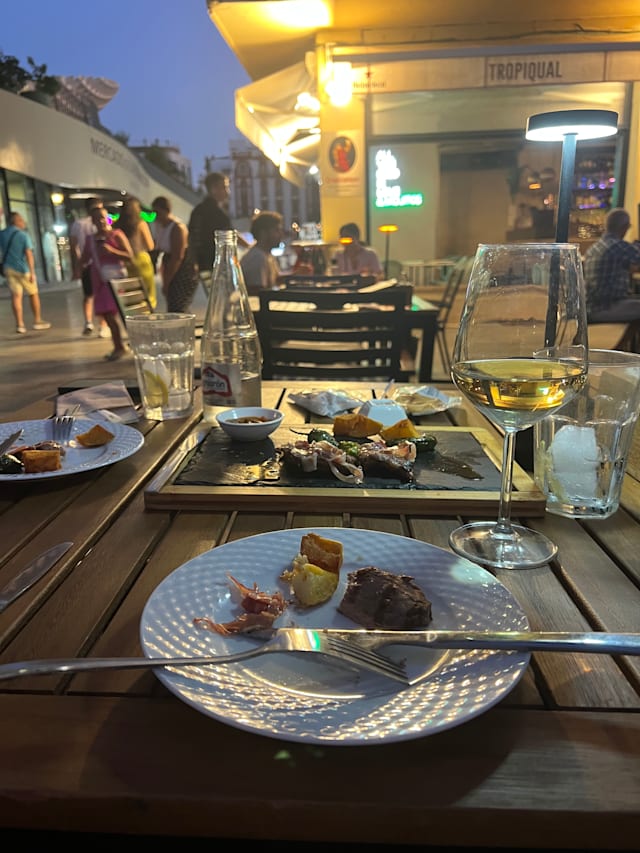 9.5/10Excellent food I had battered prawns to start,sirloin steak as main and pineapple as dessert,together with glass of wine all for 45 euros.The service was extremely good and would certainly recommend this restaurant to anyone visiting Seville