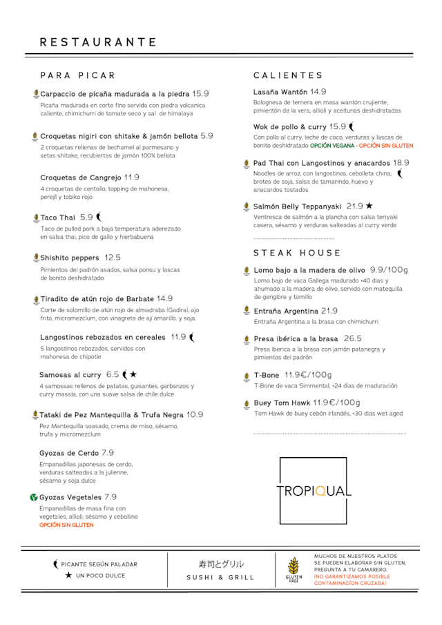 9/10Excellent and interesting menu, and the restaurant is nicely situated on a plaza next to the “Setas de Seville. Staff were friendly and efficient.