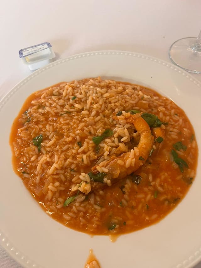 3.5/10Despite being in the middle of a tourist area, there was only one waiter and he did not speak a single word of English. This doesn’t seem sensible, given how few tourists speak Portuguese. My wife’s grilled octopus, was mediocre, and my salmon was overcooked and dry. It was our only dinner during a long trip to Portugal that wasn’t delicious. Very disappointing.