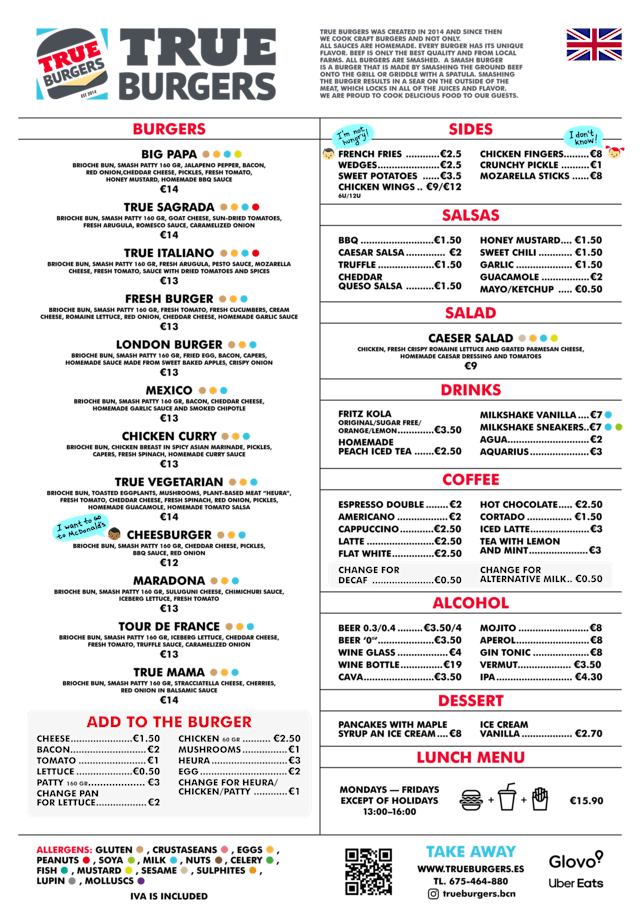 Yes, True Burgers is offering 30% off the 'a la carte' menu Reserve your table and enjoy your special discount now on TheFork!
