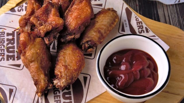 - Pan de brioche, carne de vaca tipo smash 160 gr, chile jalapeño, bacon, y salsa bbq casera, cebolla morada, queso cheddar, pepinillos, tomate fresco con miel y mostaza