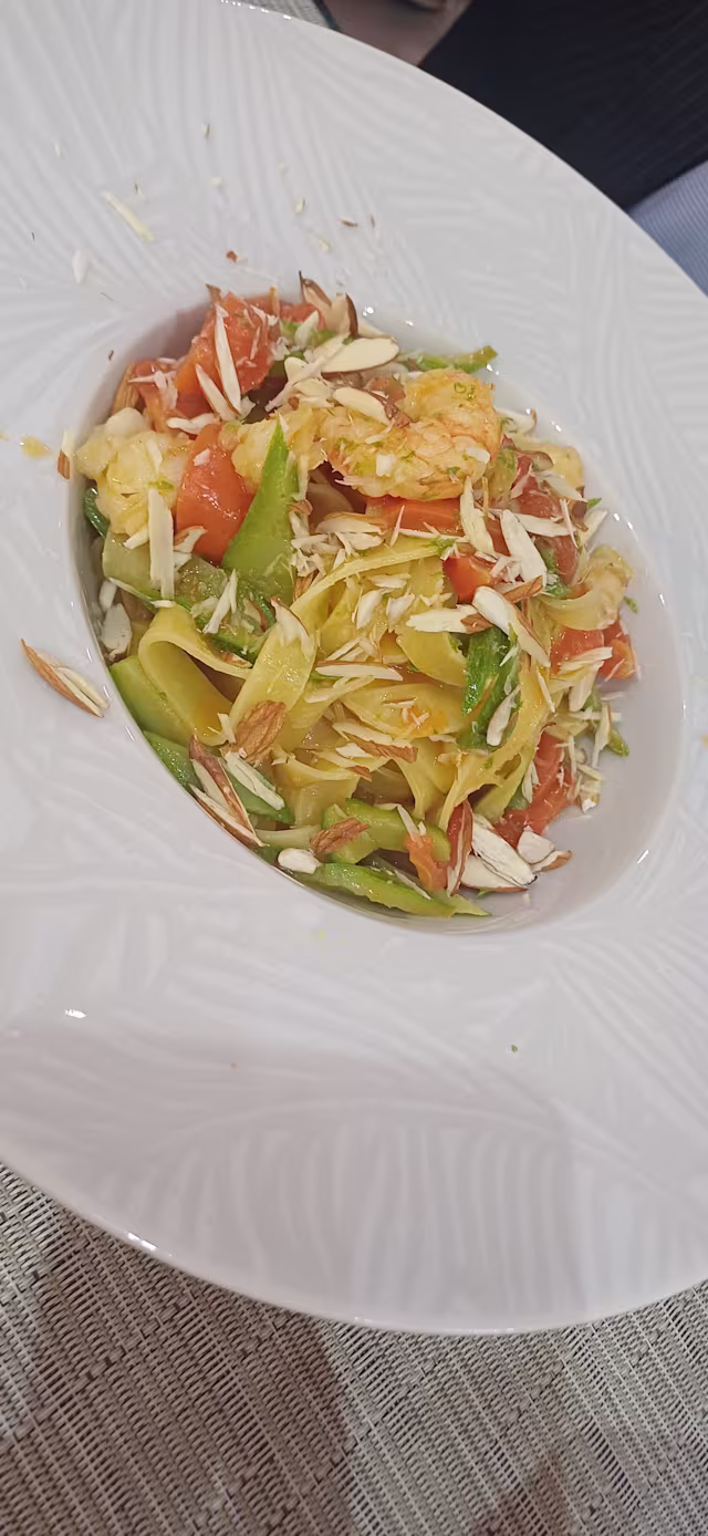 - Zucchine, gamberi, pachino e mandorle
