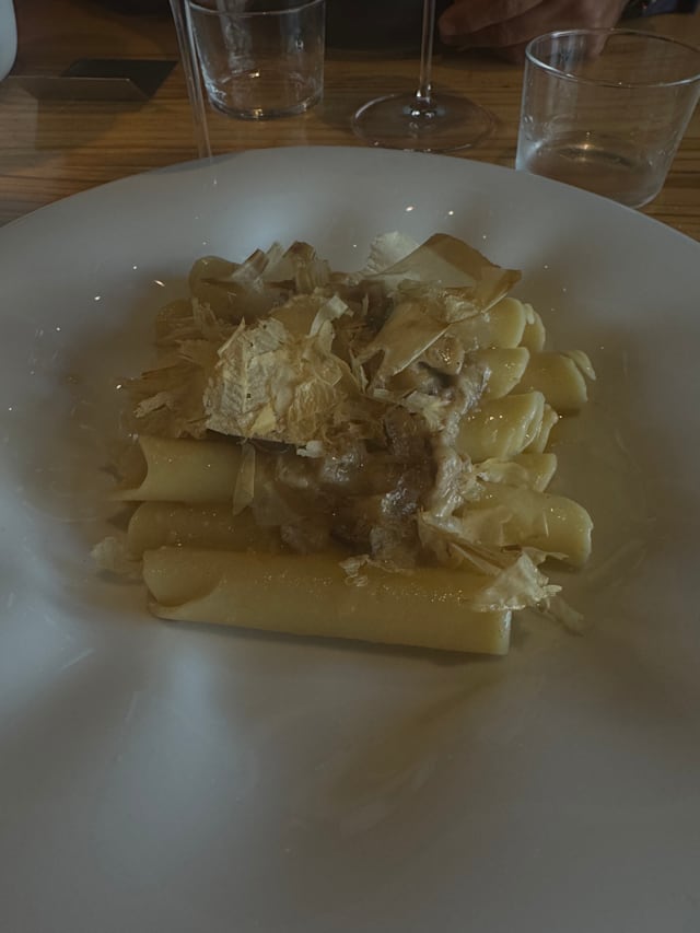 Candela di gragnano “pastificio di martino” con sugo di arrosto di pollo, funghi shitake e katsuobushi