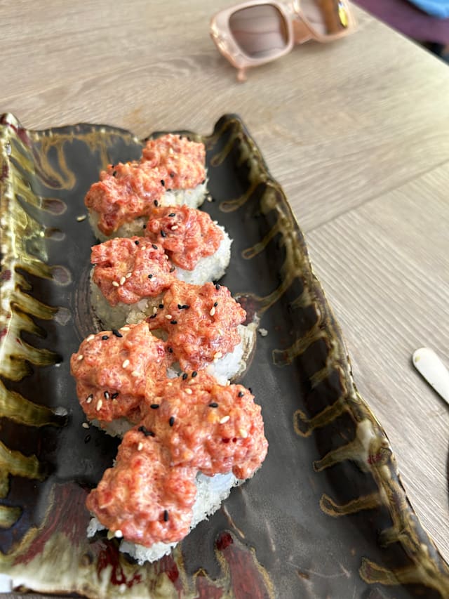 9/10My wife and I went on a date at Tsukiji. The place was nice, more so than we expected. We decided to dine inside which proved to be a smart choice because when we left the terrace was packed and a bit loud. Food quality was great not mind blowing. We specially enjoyed the Futomaki Tsukiji. The Unagi roll was fine. A pleasant experience overall. The staff were great and very attentive.