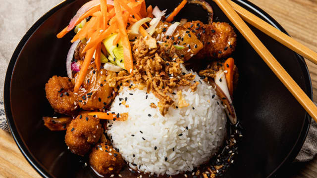Superdelicioso y adictivo pollo frito al mejor estilo del sureste asiático salteado con una salsa ligeramente picante y dulce. ¡El sabor y la sensación son casi mágicos! ¡No podrás parar de comerlo! (Alérgenos: Soja, gluten, sulfitos. Trazas de cacahuetes y sésamo)