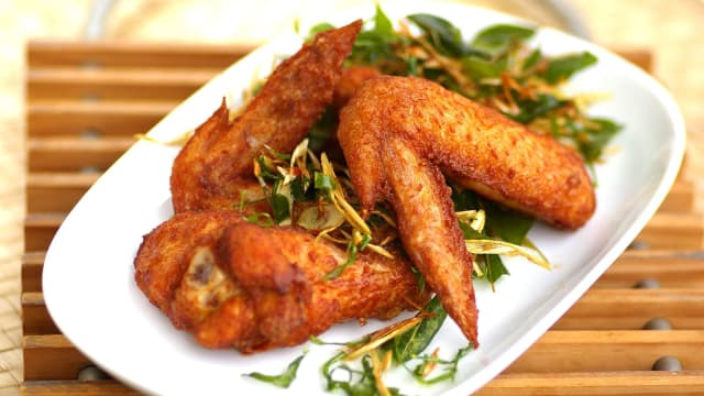 Spiced marinated chicken, roasted in the Tandoor (Clay oven). Gekruid gemarineerde kip, geroosterd in de Tandoor (klei oven).