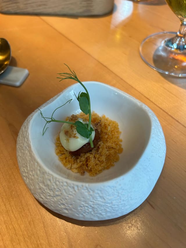 8.5/10This is a tale of two very different experiences. We’ll start with the food which is amazing, well presented and excellent value for money. The service however, doesn’t live up to the €100+ per person price tag and if you are seated at the back of the restaurant you’ll have a view of the kitchen, the ambience is not befitting of the final bill. The staff are also not up to the level you expect at this price point. It is 5 star food with 4 star service. The staff are friendly enough and did a great job of explaining the dishes, but they lacked the final polish. The digital menus are something you expect at a chain restaurant. If you want to be environmentally conscious then deliver your menus on tablets and not ask your guests to scan a QR code and try and navigate the menu on their mobile devices.