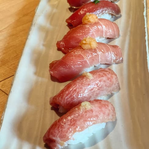 10/10Great quality of tuna , creative dishes of crudo/cooked , and modern ambiance . Rapid and professional waitstaff. I enjoyed the nigiri dishes best.
