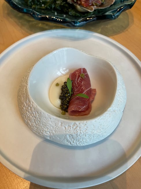 10/10+9I have never eaten at an award winning Michelin restaurant before. There just happened to be a Japanese Michelin restaurant across from our hotel. Tunateca Balfegó is dedicated to creating fusion-style dishes using sustainable Bluefin Tuna and Kaitai, an ancient Japanese art that consists of achieving the precise cut of a 100 kg specimen. We were able to get in for lunch today. We had the Red Gourmet Menu, which consisted of several appetizers, hot and cold courses and two desserts, a total of 13 dishes over an hour and 45 minutes. I eat seafood but not other meat, so the chef modified a few of my dishes. It was an incredibly delicious experience and certainly something to always remember.