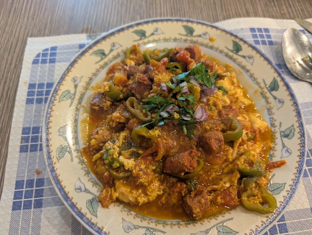 Sugo tipico tunisino speziato condito, con fegato di bovino cipolla, pomodoro. Spezie e prezzemolo