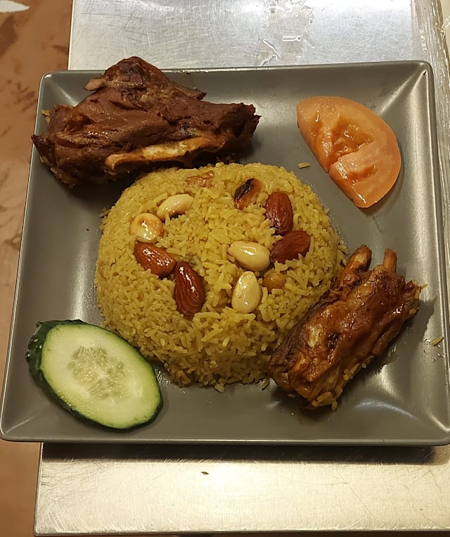 Riso al vapore tipico tunisino speziato preparato con agnello o vitello, ceci e verdure