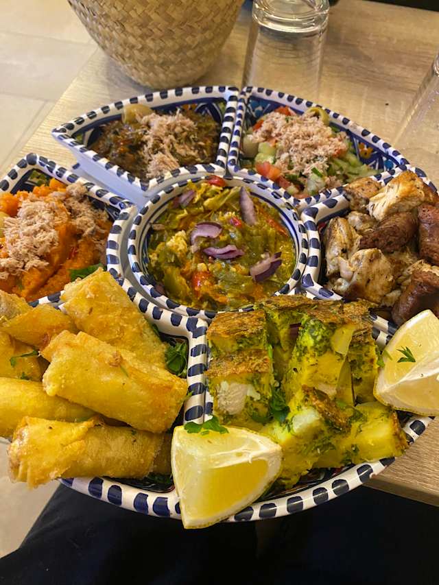 Mini tagine, mini brick, olives trio salades tunisiennes, salade blanquite