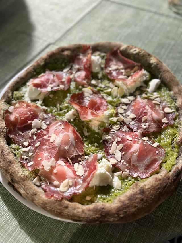 - Fior di latte, mortadella, stracciatella, crema di pistacchio.