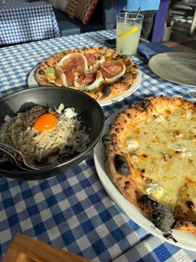 8.5/10We were looking for a place to grab some pizza and decided on this spot because it’s known for having some of the best pizza in Lisbon that we’ve tried so far, plus it offers a great view of the port (especially if you sit outside on a warm evening). The pizza did not disappoint—pure pleasure. However, it took 40 minutes to arrive... What really let us down were the cocktails. The Whiskey Sour was awful, and the Margarita was no better. Service here is usually pretty good, but this time we got a trainee who wasn’t up to par. After we complained about the cocktails, a better waiter took over and even had the cocktail remade, though it didn’t improve much. Overall, it’s not a bad spot because of the view and the pizza, but your experience may vary.