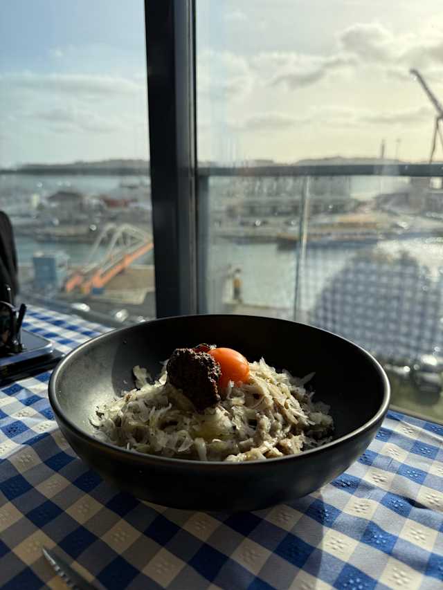 8/10Good was really good, the space is cosy and with a nice view. However the staff seemed a bit unexperienced, for example asking us to order and less than half of people has even arrived or taking the glasses away when we still had drink. But despite that the staff was very nice. the restaurant had some water leak in ceiling which didn't affected our seat but is not great to see this is a restaurant. Overall can improve and become an even better place to go for dinner.