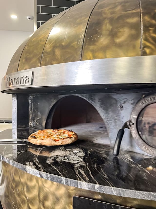 Pesto de pistácio, mozzarella fior di latte e pepperoni