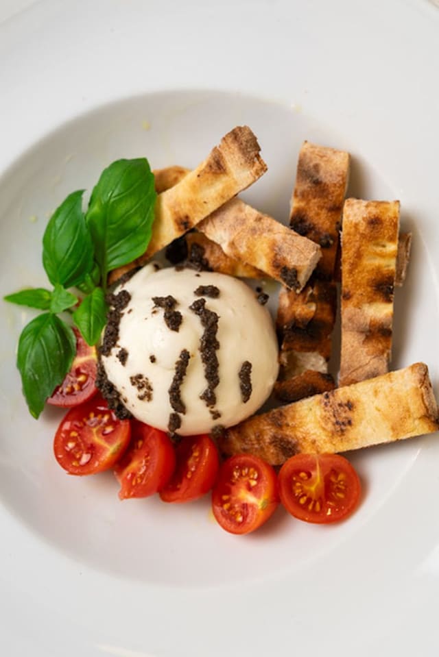Burrata com pasta de trufa e azeite trufado