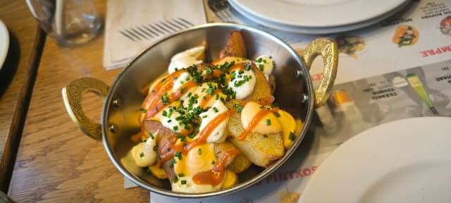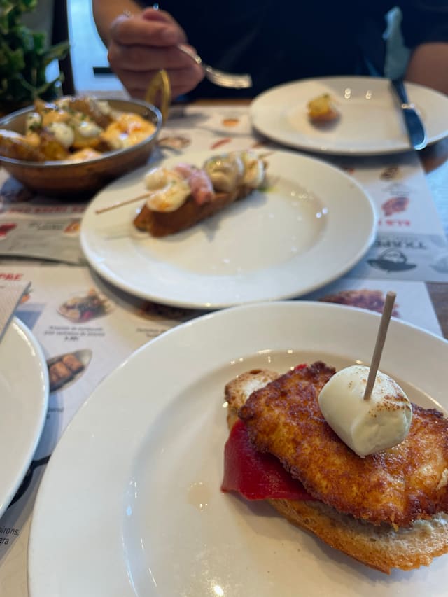 9.5/10This is a cute little local bar/restaurant right off Placa de Catalunya. With such a touristic location, we were worried about the food. But the menu consisting of pintos and tapas and local drinks was spot on. We ordered 4 pintos and 2 tapas for the 2 of us. Excellent, tasty bites. My favourite was the mini chicken skewers with jalapeño peppers. The servers were quick and friendly. We enjoyed our visit! Highly recommend if in the Placa De Catalunya area.