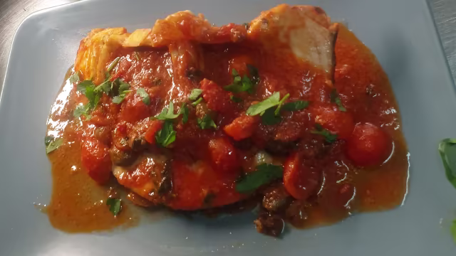 - Spada alla siracusana pomodorini, olive, capperi, aglio, prezzemolo, pepe
