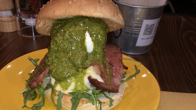 Pane in cassetta, crema di avocado, salmone affumicato, uovo al tegamino