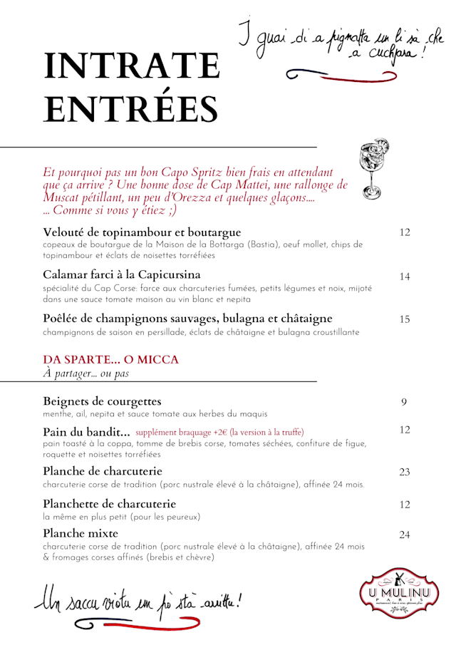 10/10Lovely place. Unique dishes since it's Corsican specialties. Group of six, we especially liked the Veal olive stew and the Chestnut cake with so delicious chestnut cream for dessert.