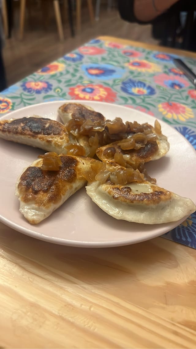 5 empanadillas rellenas de patata, queso fresco y cebolla