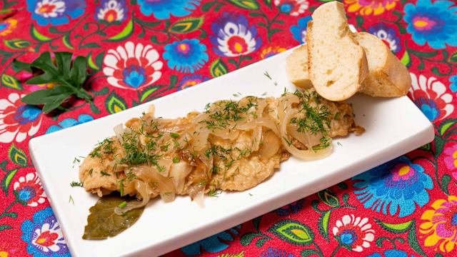 Pajda chleba ze smalcem i ogórkiem kiszonym
