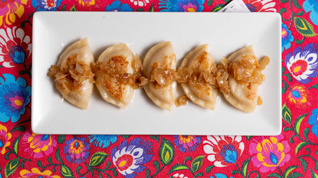 5 empanadillas rellenas de patata, queso fresco y cebolla