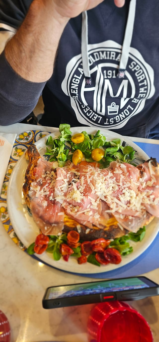 Crudo di parma DOP, pomodorini, olio evo bio e basilico