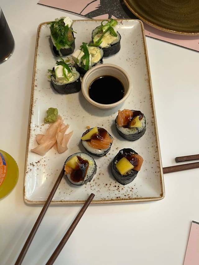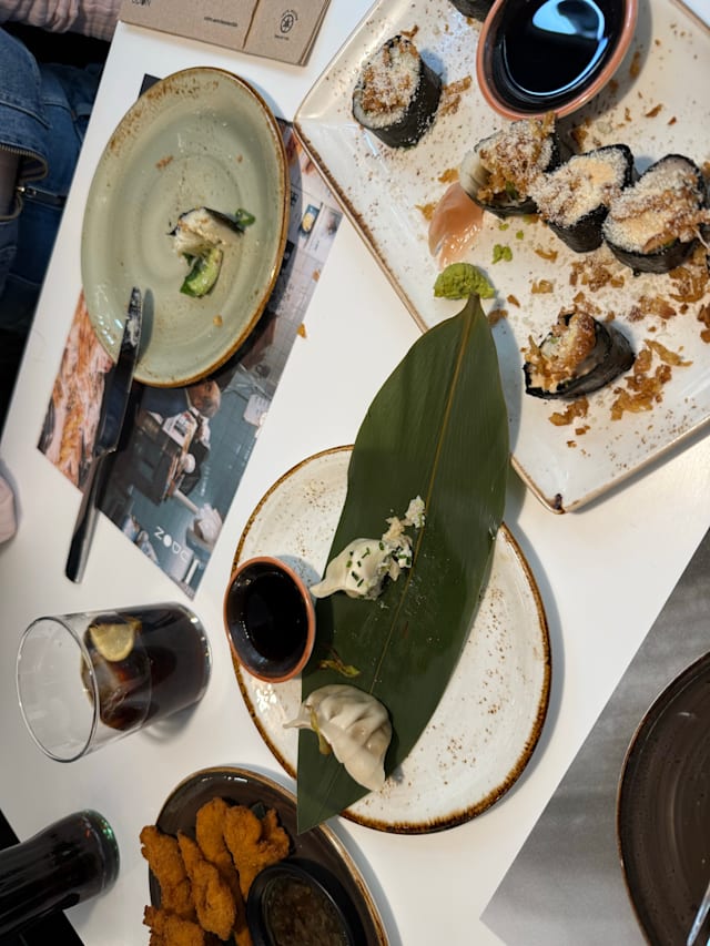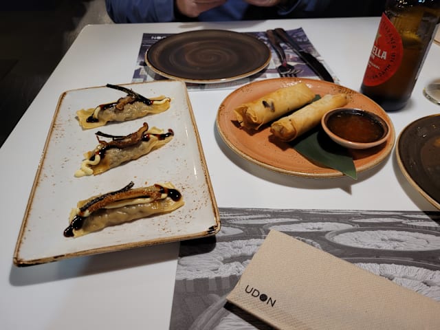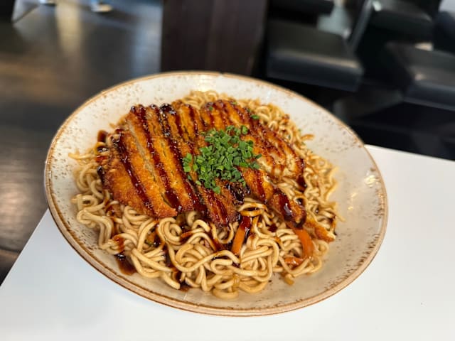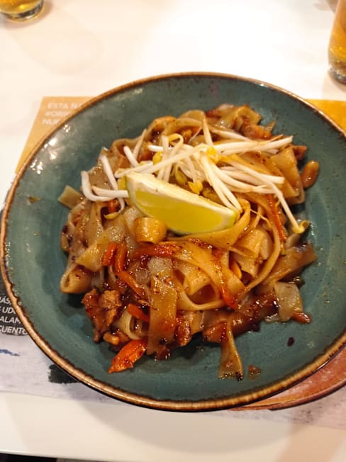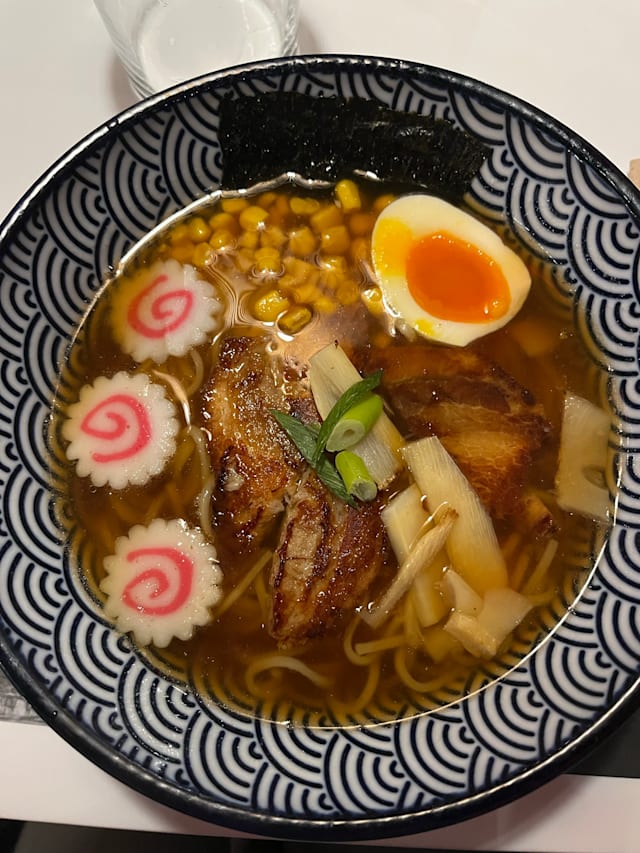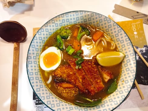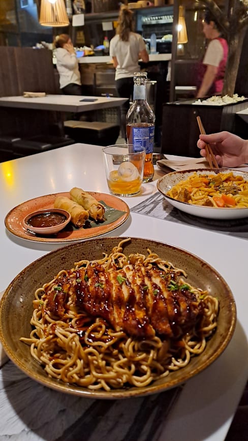 6.5/10I am Asian and after seeing all these ramen noodle restaurants popping up in Spain, I decided to finally try it...and was disappointed. We ordered the salmon tataki which was small pieces of seared salmon with wasabi and no soy sauce for dipping; seafood yakisoba which was served with ramen noodles not soba and hardly anything but noodles; and vegan ramen which had a delicious broth but served with spaghetti not ramen and bland vegetable protein. More like the Spanish version of Asian food. It was a pleasant experience but we won't be returning.