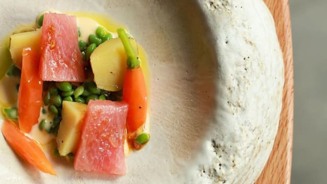 En sashimi al vapor de sake, en tartar y suquet tokyo-ampurdá (por encargo 24 horas. Ración recomendada para 2 personas, 900 gramos aprox.)