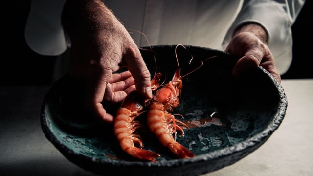 Sunomono de mejillón gallego al “hierro”, lengua de vaca ahumada, percebe de los pobres y verduras tsukemono