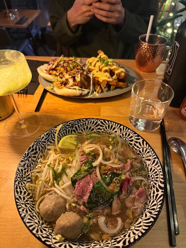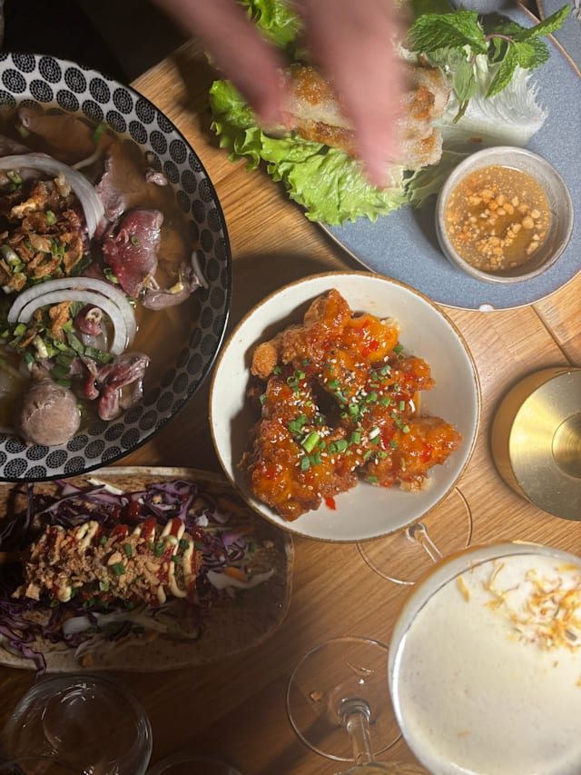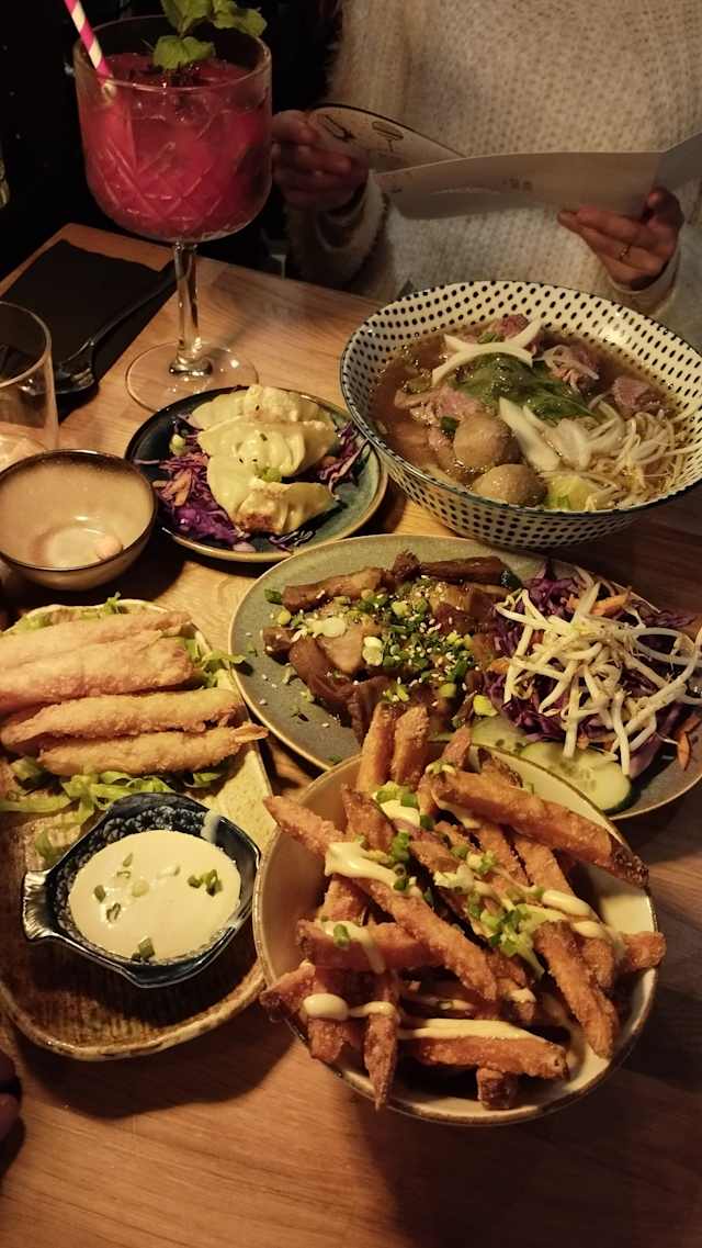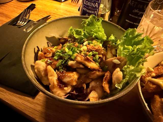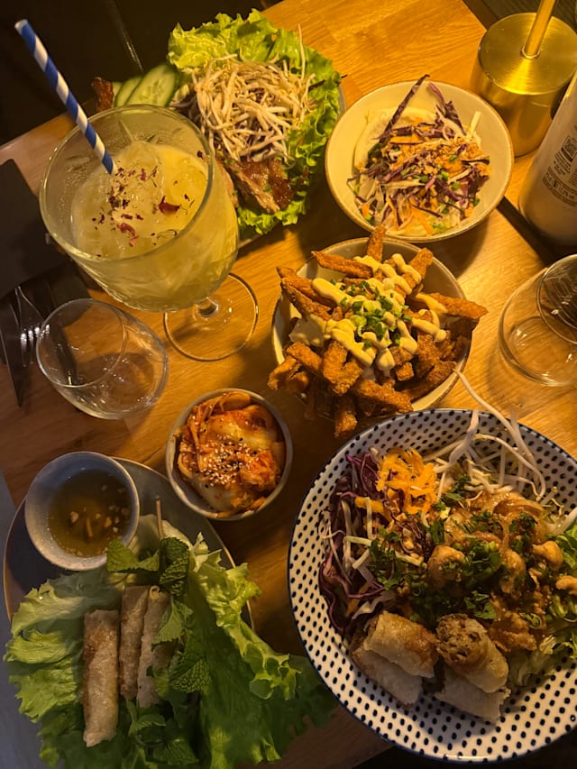 7/10We went to this place seduced by a good rating on the Fork. The atmosphere is lovely, great work of interior designer, and the staff was nice. But the food was absolutely tasteless. No spices at all! Not even salt and pepper! And it is supposed to be Asian cuisine... My dish was literally a bowl of rice noodles without sauce, some plain boiled chicken on top, 2 nems cut in half (they actually tested of something), and all that sprinkled with a little bit of peanuts. No sauces on the table, nothing to give it any taste. Same with the burger - it looked great, but it was absolutely blend. Unfortunately, not a good food experience. But it was cheap by Nice standarts:)