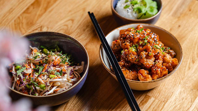 - Salade vietnamienne de vermicelles, viande sauté ou tofu grillé, légumes croquants et cacahuètes grillées. Vietnamese vermicelli salad with sautéed beef, crunchy vegetables, and roasted peanuts. Boeuf / poulet / tofu