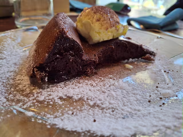- Torta mele e cioccolato servita tiepida con gelato alla crema