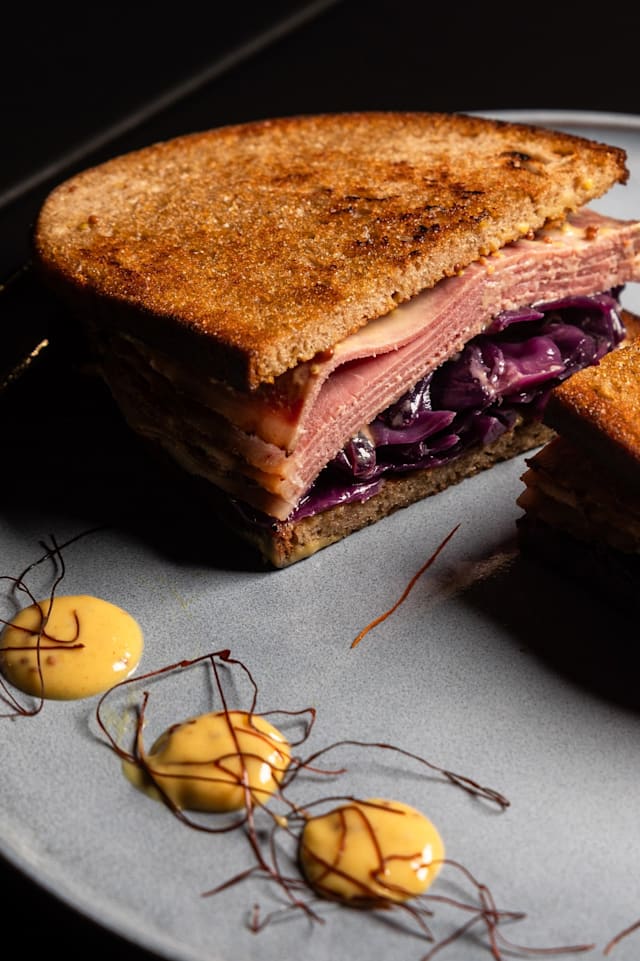 Pastrami di manzo con cavolo viola senape e pane di segale