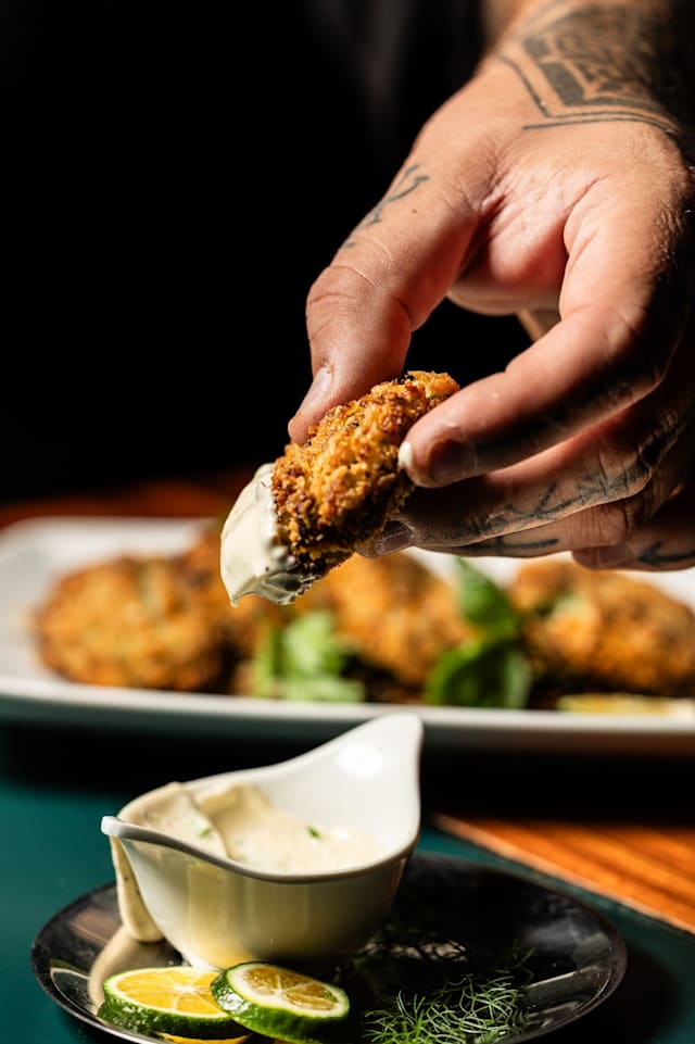 Crocchette di baccala' con senape al miele di sulla e salsa pil pil